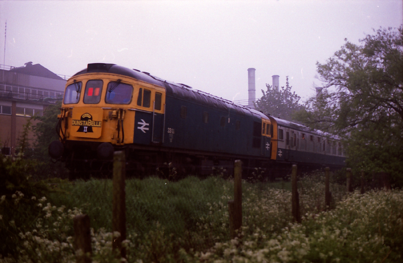 May 3rd 1987 – ADAPT Dunstabelle to Brighton (from temporary platform at Kingsway) 33119 and 4TC 8019