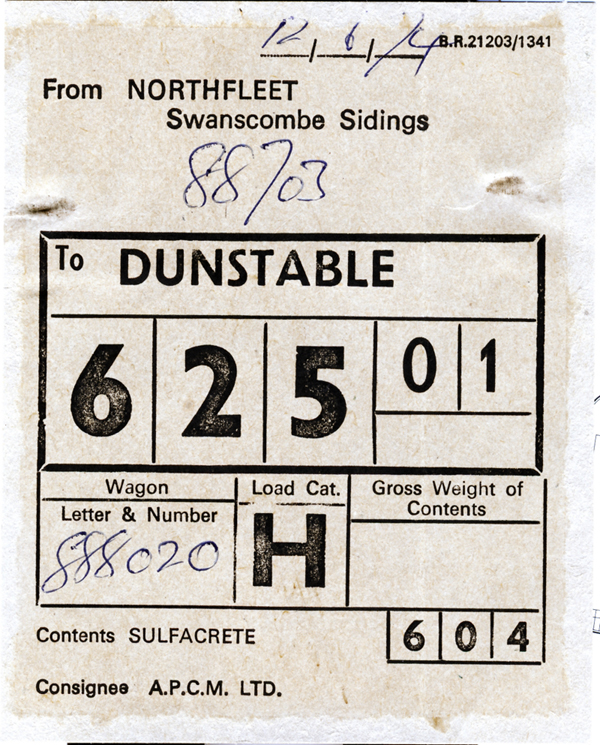 A wagon label from the 12th June 1974 which was probably from a a wagon off the “small cements”