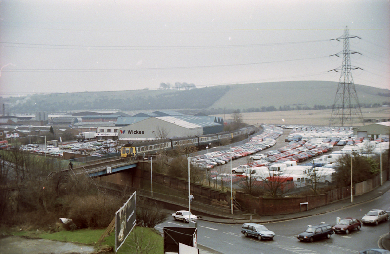 Work commitments saw me get a grandstand view of 33119 on the Dunstabelle 1 to Brighton whilst doing Sunday overtime on May 3rd 1987. A few enthusiasts gathered on the Church St bridge to watch 33119 and TC pass on a grey Dunstable morning. Enthusiastic locals made up the consist of the 4TC stock that formed the special. Enthusiasm at the time for the branch reopening to passenger services was at a real high, this special reflecting the buzz the line could give the town.