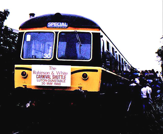 May 30th 1988 – Local Carnival shuttles Dunstable – Luton (temporary platform) using Green Cravens 53359 and 54122