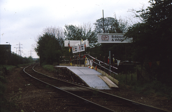 From the late Tony Ewer, heres the temporary platform built by Robinson n White a few days after the Dunstabelle I ran in May 87. This view is looking East towards Church St bridge