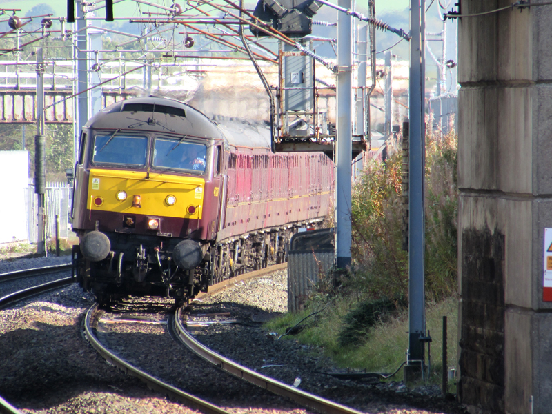 47826 awaits the road North of Carnforth, having worked the tour emcars from Falkirk
