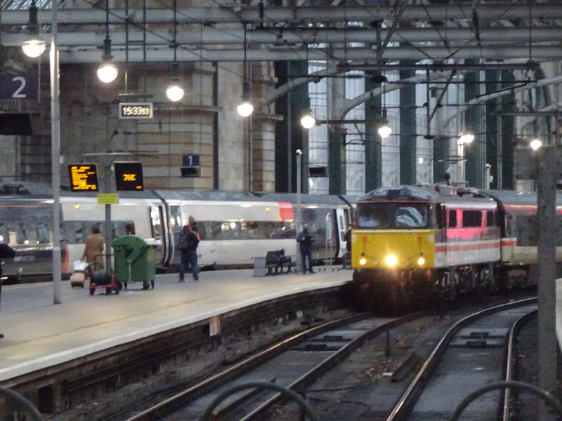 We turned right at Law Jn to take the less familiar Wishaw and Bellshill route to Glasgow Central where we arrived 50 down. We all had 2 and a half hours to do our own thing. As I headed towards the Low level platforms all i could hear was 87002 “singing” away, an emotive almost forgotten sound.