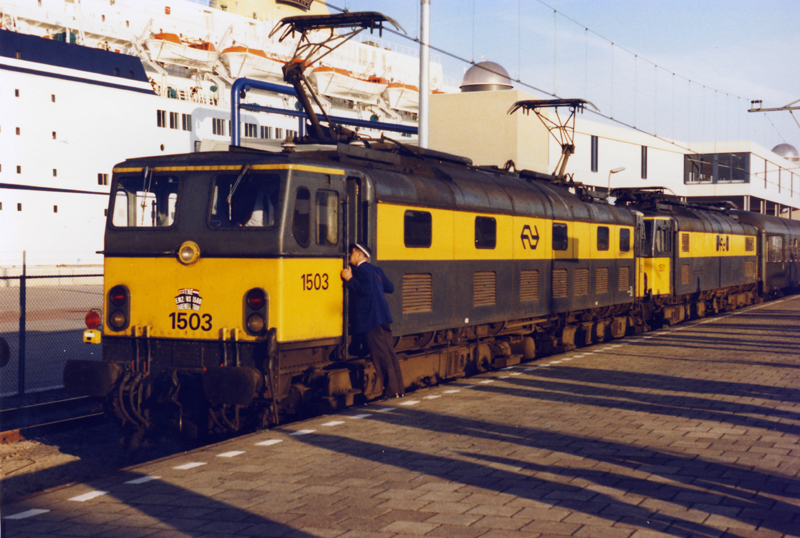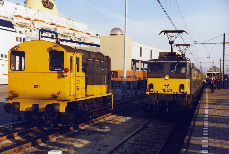 The EM2’s, 08 621 and the mighty Konnigen Beatrix ship at Hoek Van Holland