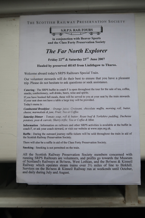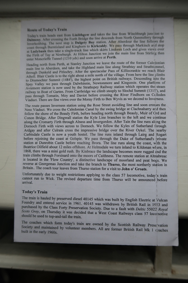 This had been a well organised, typically old fashioned type of tour, 40145 performed superbly, well done the SRPS and CFPS on getting a 40 to Thurso , tis a long way North”!