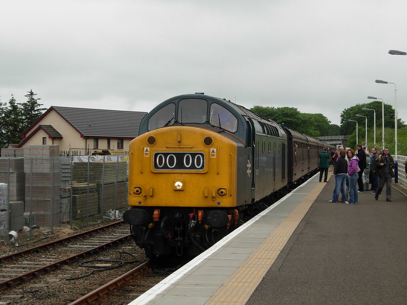 Shades of 1976 with 0000 in the headcode box 40145 returns to Thurso wit the tour ECS, 57601 at the other end will work to Wick for 40145 to slog all the way South