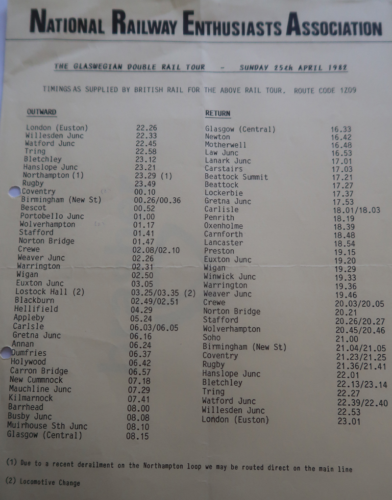 The Glasgow Double Railtour, 24 and 25th April 1982