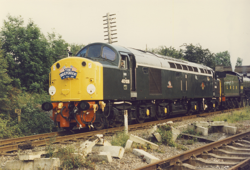 From Walsall it was over the rural delights of Sutton Park before crossing Nuneaton flyover before reaching Leicester and eventually Loughborough BR. Another mass bail and a mile walk although a vintage bus was laid on for a few of the fossils aboard. The highlight of the day followed from Loughborough (GCR) followed with 40106 and “kettle” Mayflower (USA independance day, cowboy connection, yawn) powering. The 40 was thrashed manically absolutely blistering thrash for the short run to Rothley, then the Southerly limit of the GCR. A repeat performance back saw our spirits lifted on the walk back to Loughborough BR.