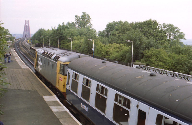 A basic hourly Waverly – Kirkcaldy hauled service replaced the usual DMUs, plus the substitute Mk 1’s made peak turns to North Berwick and elsewhere. The Kirkcaldy power was mainly class 26/27! The Kirkcaldy workings supplemented the Edinburgh – Dundees so it was a bit manic for the vast bashing crowds that descended on these trains as there was so much to cover! There were a few farces most days to add to the fun!.