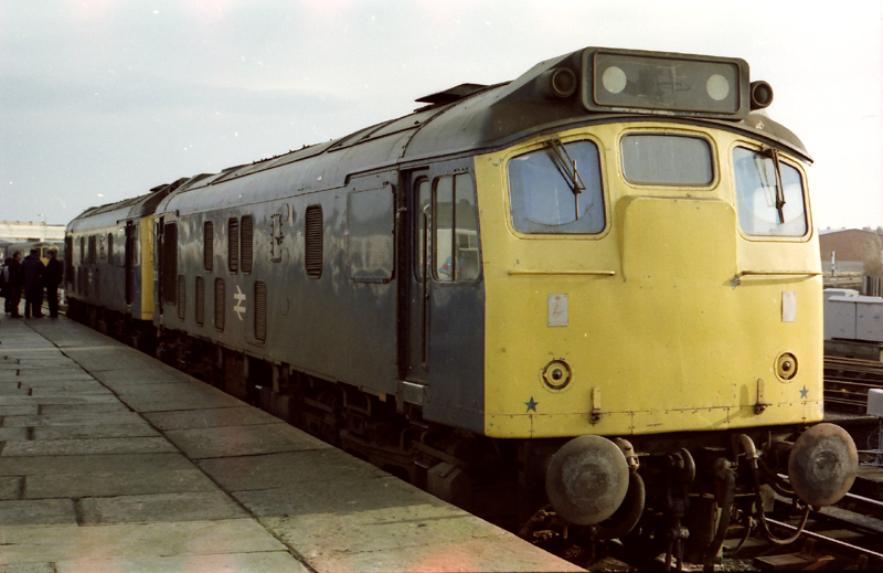 Prior to a storming run, 25224 and 25034 prior to be attached to the tour at Southport, 090385
