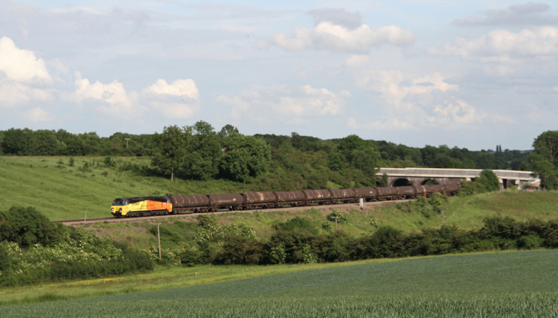 60017 on the approach to Sharnbrook Viaduct with 6E38 1354 Colnbrook – Lindsey on 050613