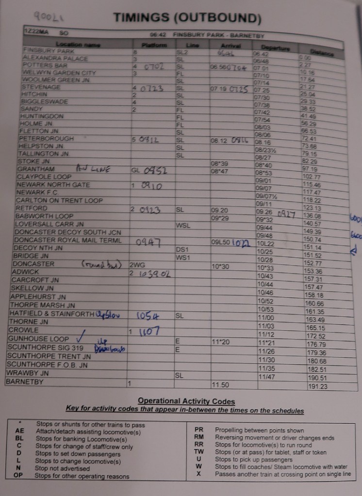 On departure we ran into thick fog, with it lifting slightly for the Grantham avoiding line. My colleague joined at Retford from where the tour was full. Doncaster Mail terminal platform saw many GBRf sheds coming and going plus 60015 replacing the 90 up front and climate green 66004 on the rear.