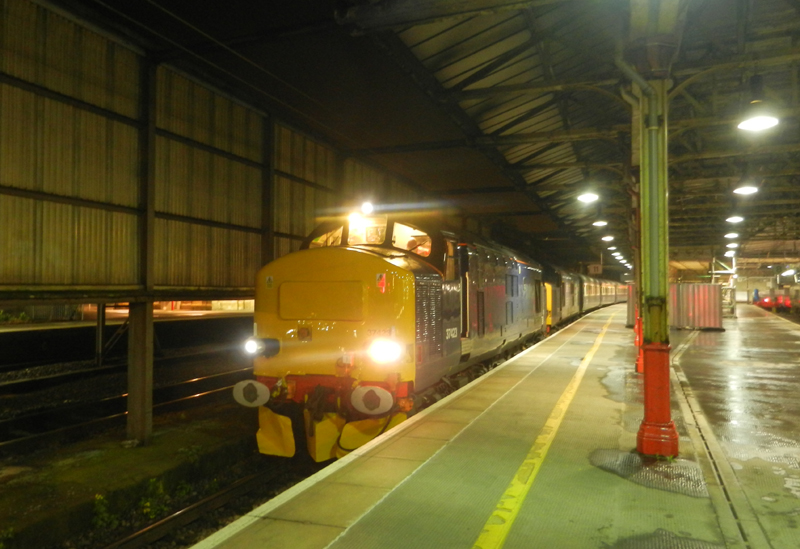 All over after 1200 miles of action, its just after 3am with 37423 and 259 about to erupt out of Crewe with the emcars