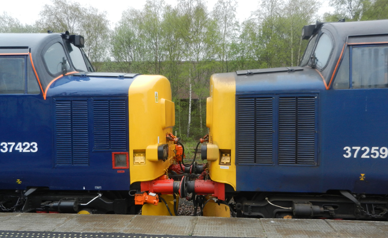 37259 and 37423 rest at Perth after an overnight slog from Crewe