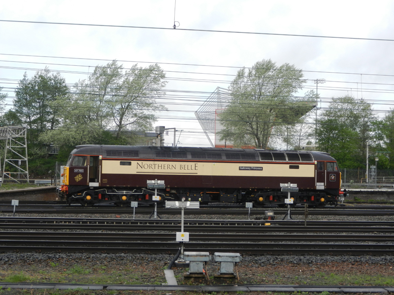 Crewe from 2330 to 0130 was surprisingly busy with some freight including 60007 on a coal train, 90020 on 1S25 Sleeper and a “ronnie” on a booked Pendo drag. The tour arrived around 0115 and we joined our allotted coach B in a rake of 11 coffins but a generator coach right behind 37259 and 37423 reduced the thrash. On departure at 0135 i found an empty bay and dossed out completely missing the Carlisle photo stop. Not long after 6am the lowland locals began to join the tour at the likes of Wishaw and Larbert so i returned to my booked seat for more doss.