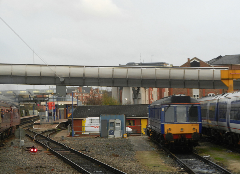 The new connection from the Oxford-Claydon line onto the Chiltern main line earthworks look well underway at Bicester, the tour brochure claiming a Feb 2014 chord opening for engineers traffic.
