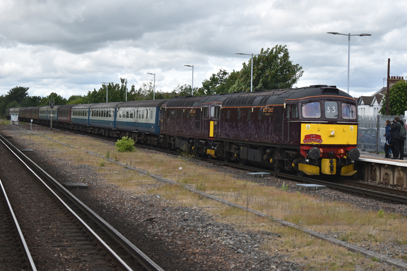 33029 and 33207 arriving at Folkestone West with the tour in June gloom. The RHDR visitors left the tour for us to fill their seats on the jaunt to Faversham