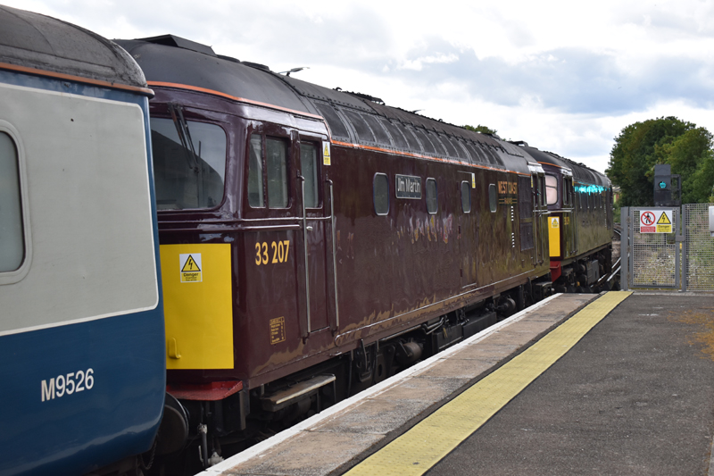 33029 and 33207 arrive at Faversham with the return delayed by operational difficulties