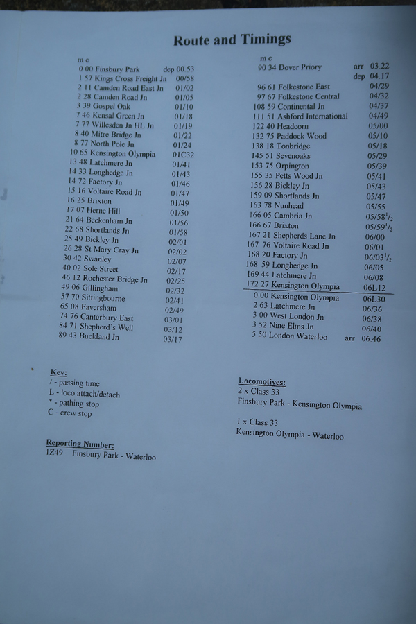 Me and Tony both stirred at the hour long photo stop (0322-0417) a Dover Priory, Tony commentating “mind the sleeping beauties” as we crept passed sprawled out, semi comatose bashers! I’m pretty sure we photted the pair up front but alas i have yet to find the photo. The tour handout advised that as Dover Priory is a “residential area” so please “avoid making excessive noise”. Well i can confirm that only some loud snoring could be heard at Dover.