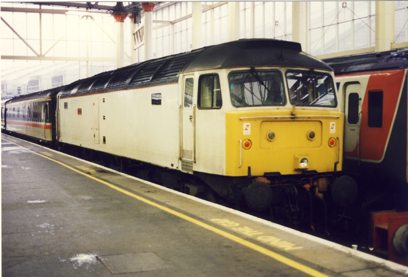 At that time the “up Midnight” served Waterloo rather than Padd to assist with Eurostar connections, heres 47846 “Thor” at the blocks with the 2100 ex Penzance in dodgy white livery