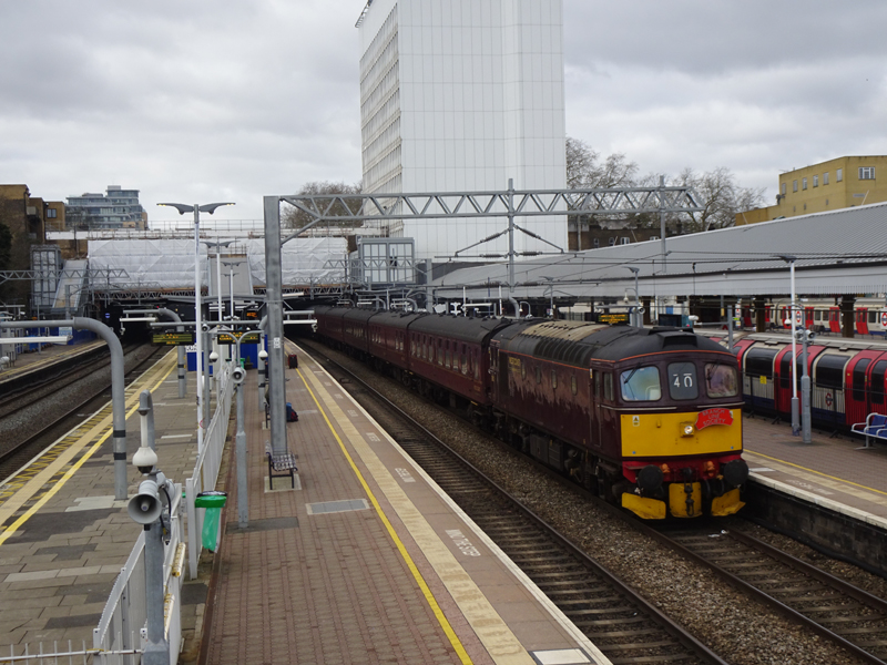 Still get used to wires at Eaing Broadway! 33029 storms through with the tour ECS for Padd