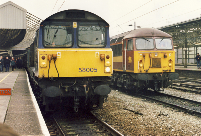 58005 about to be removed from the tour, having worked from Watford. 56115 awaits alongside to be the translator for the 92