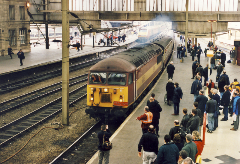 With what i assume is the supervisor pointing to his watch 56115 brings the tour stock into Carlisle, delayed by 30 minutes due loco headlight issues on April 1st 2000