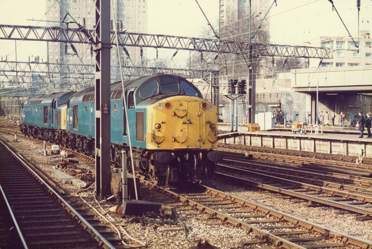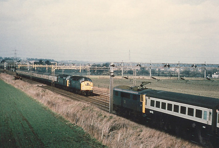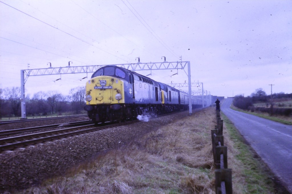 Thanks to Dave Spencer for this view of 40086 and 40084 storming South down the Trent Valley at Standon Bridge on March 5th 1983