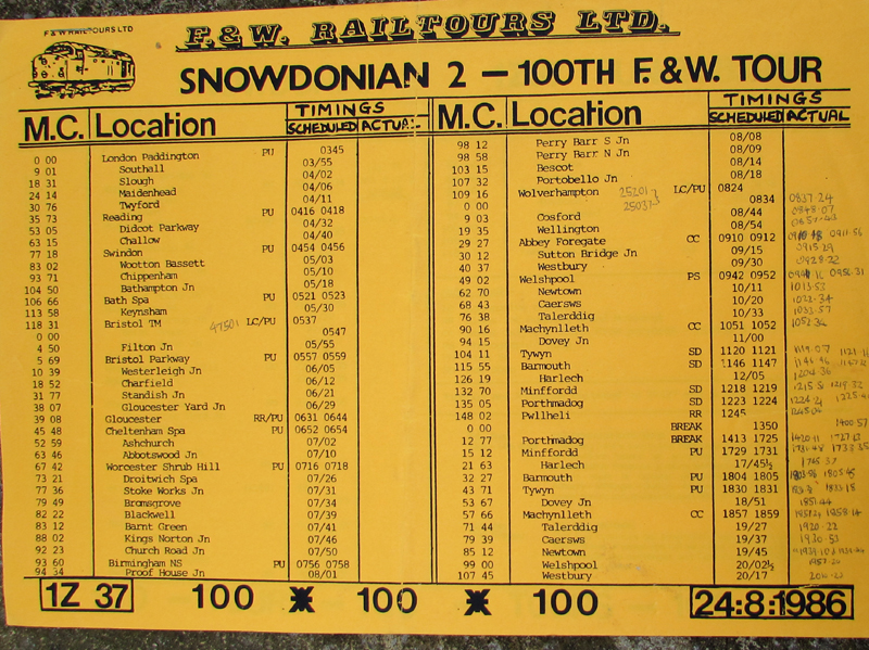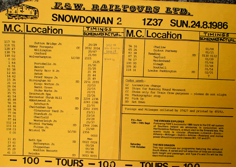 The Snowdonian II Railtour remembered, August 24th 1986.