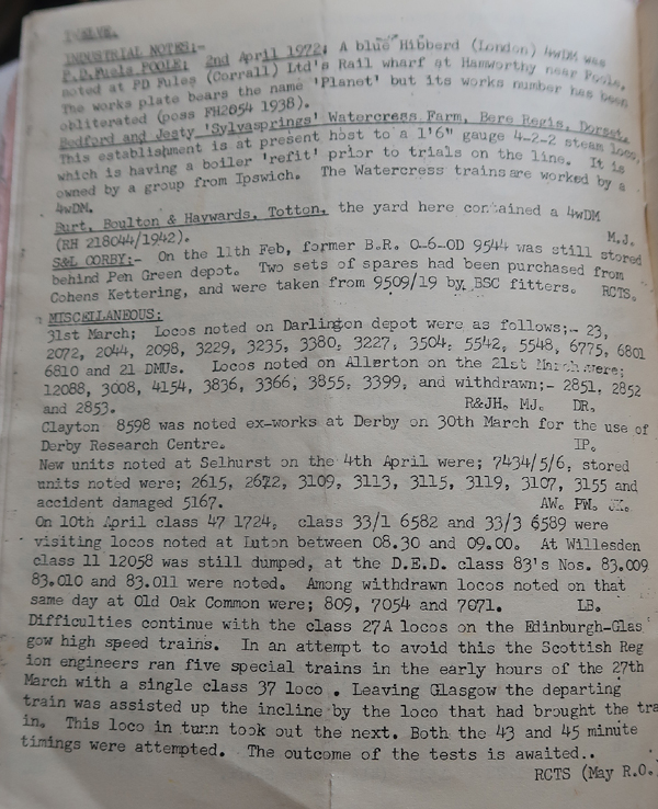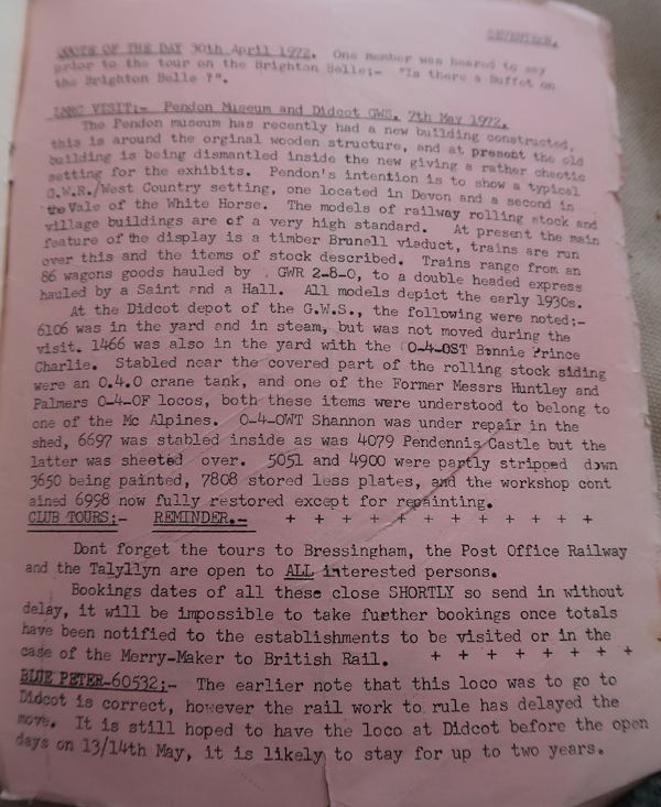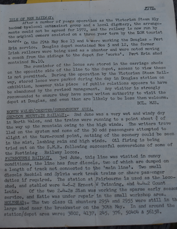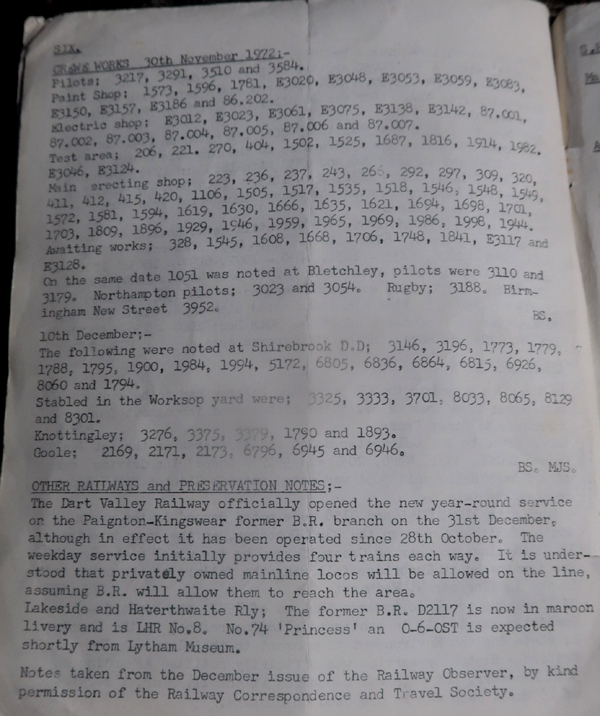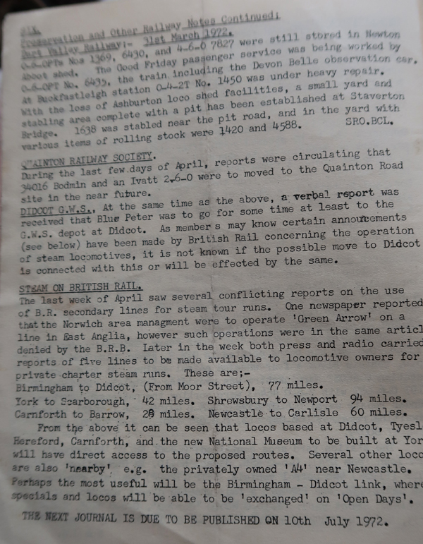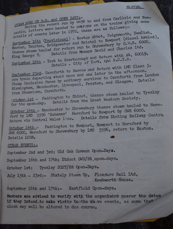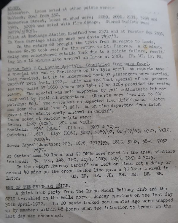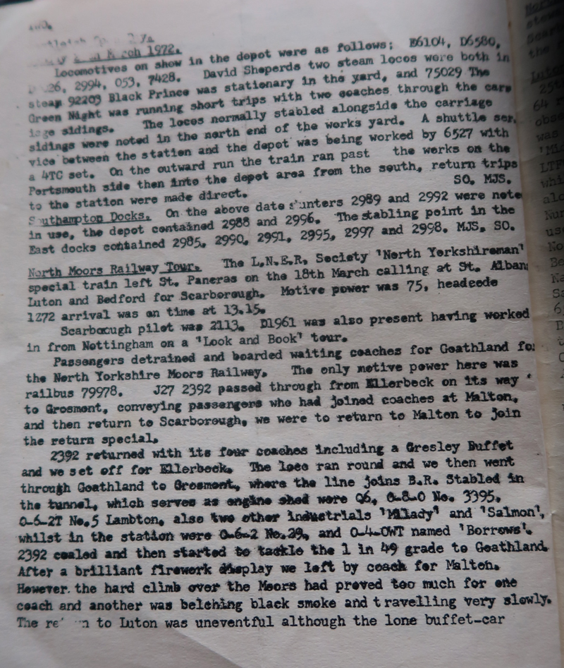 Uncovering one shoe box marked for “relocation” saw at the bottom, neatly protected in a plastic wallet were 6 SBLC Journals dating from 1972-1974. Tidying up finished! I engrossed myself in the feast of early 70s gen, an interesting mix of local and not so local information. I was a member of the SBLC for a few years in the early 70s doing a good few of the SBLC depot tours by coach and train. In the 60’s the SBLC had run 1 or 2 classic Railtours each year using power and track long confined to history by 1972.