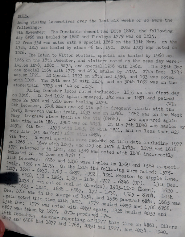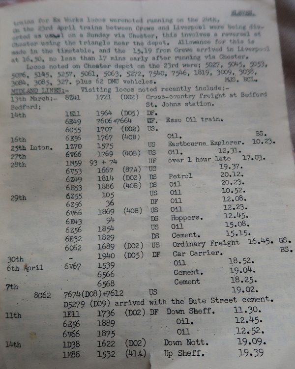 Page 2 – DY works report, also gen on 5034 working 1M15 to St Pancras