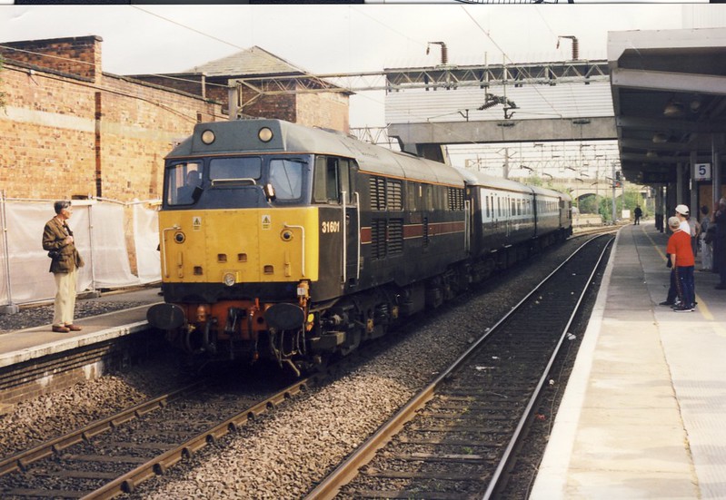The late Brian Lockey enjoying the push pull 31’s 31601 and 31452 at Bletchley after working the 1546 from Bedford on May 1st 1999