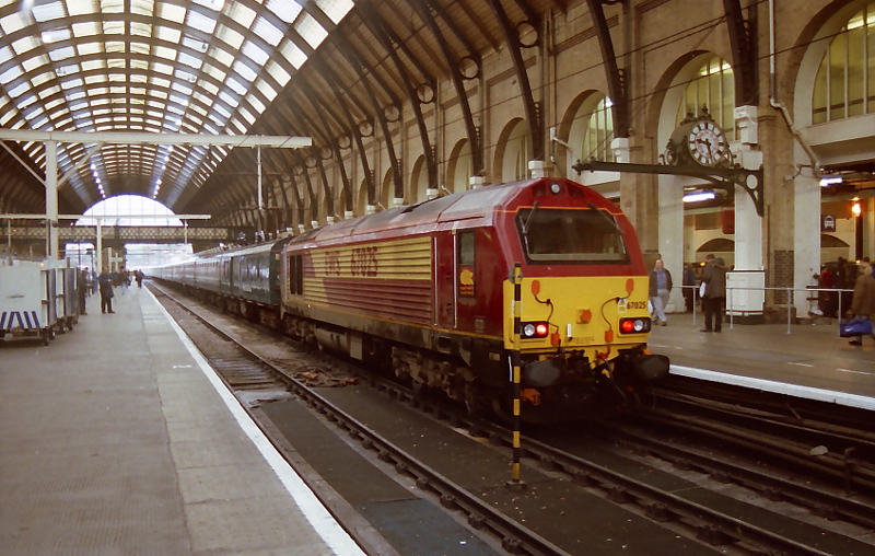 Farces: 1/loco changes in Peterborough West yard – not good for phots! 2/ Initial lack of 37s caused many long faces but came on at Stafford vice Crewe 3/ OTT safety “Instruction” from Stafford station girlie.