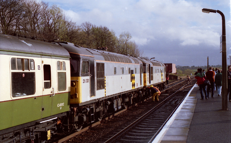 26005 and 26001 at Markinch during the photo stop which became a 2 hour one due to the smoking traction motor on 26005