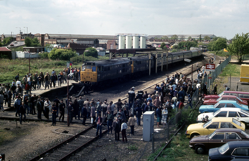 Crowds at St Johns for the last time, 31116 and 31128 with the Ten Counties tour at Bedford St Johns