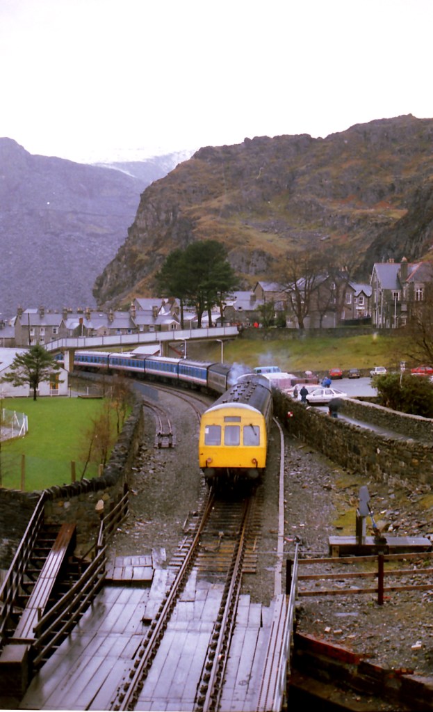 Here a now immaculate repainted shiny green 40122 was attached and by Beeston Castle we knew her field divert problems or whatever had been cured as she was storming! Along the coast it seemed like old times with memories of many of her long scrapped sisters similarly storming through Abergele and alike. At a wet Llandundo 47287 was used to shunt the stock out to the coach sidings, a good few of us staying on for the riot value. Then came the climb to Blaneau, we walked up to what was now the front coach for a some serious grinding, growling 40 thrash.