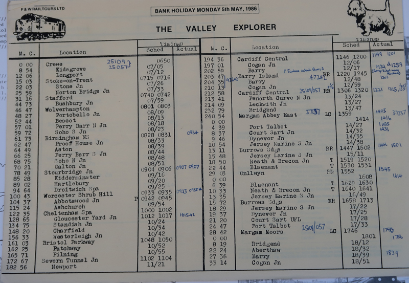 25109} Margam-Bridgend-Aberthaw-Barry-Cardiff-Newport-Lydney-Cheltenham-Worcester 25057} SH-Hartlebury-New St-Wolverhampton-Stafford-Stoke-Crewe