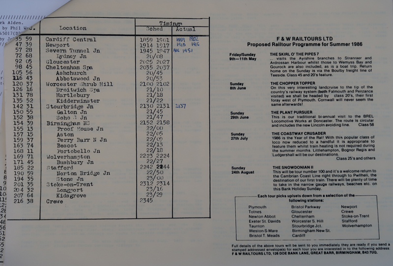 We retraced our steps back down the Vale of Neath, to Burrows and then Margam before the rats replaced our South Wales syphon. A good run back to Brum followed with much Sulzer sound over Hartlebury and a virtual right time arrival back at New St around 2200, a hugely enoyable tour was over.