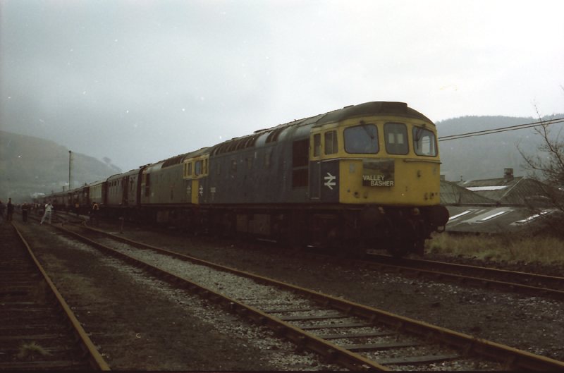 33062 and 33025 rest at Cwmbargoed after the long climb up the valley