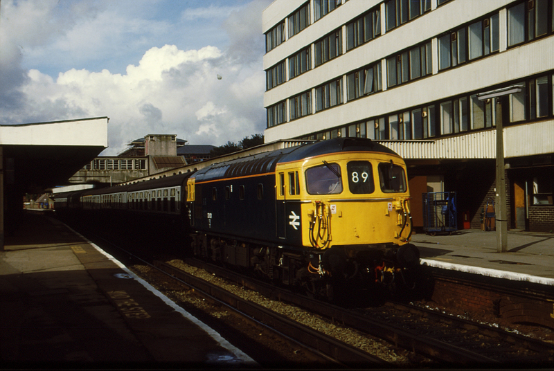 Many of us bailed at Fareham ove rthe years, here Tony captures 33001 on the 1008 Bristol – Portsmouth on September 26th 1987