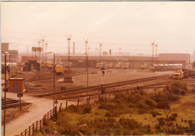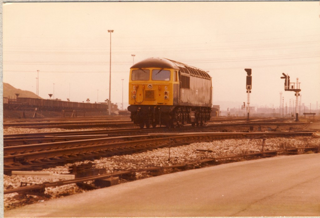 From New St a tram to Derby, for 45109 on a rake of Mk 1’s for the short run to Long Eaton. We were Toton bound and having been there 9 years earlier i thought i knew the way from Long Eaton station. We were soon hopelessly lost with a few locals helping us in the right direction. Then from high on a busy dual carriageway embankment was Toton yards and depot…………………………..