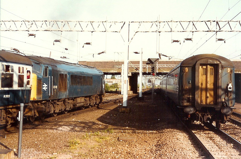 Parallel running at Nuneaton, 45016 departs with the 1420 Paignton-Nottingham