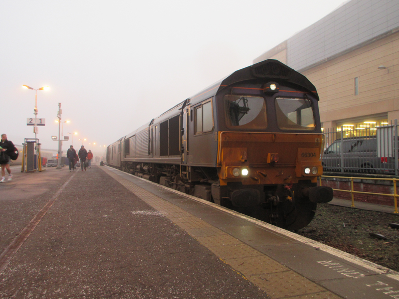 At a foggy freezing Inverness, 66304 and 73966 rest after working 1S25 from Edinburgh on January 19th 2026