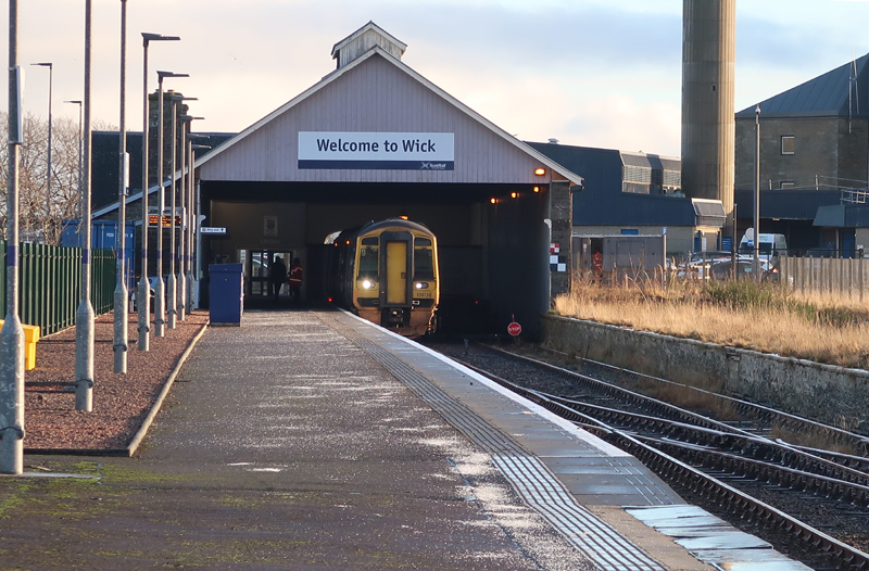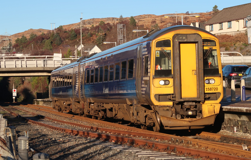 Kyle in rare sunshine! 158720 arrives with the 1056 ex Inverness on January 9th 2024