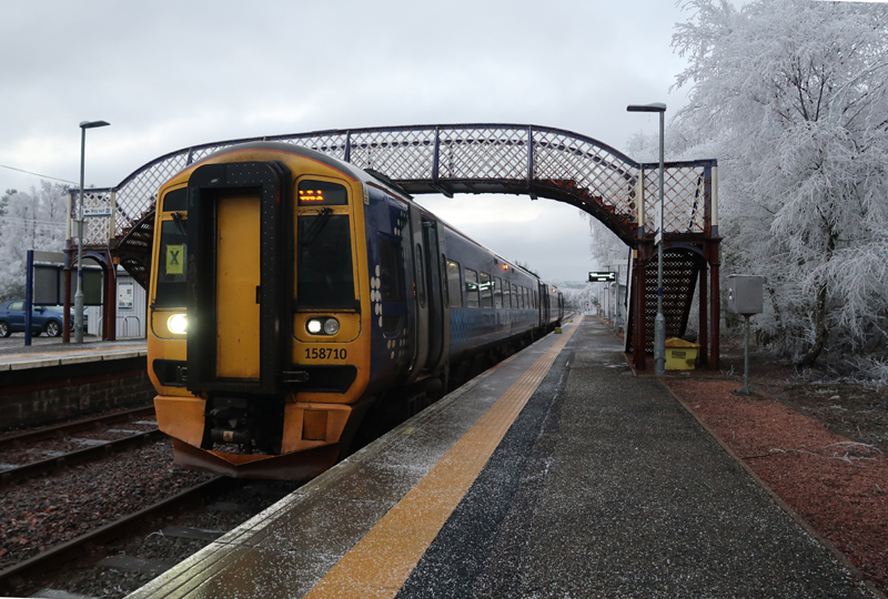 Tad chilly at Lairg with 158710 awaiting the up service on January 10th 2024