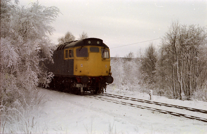 27055 at a very chilly Lairg on January 27th 1985. the “tiptops” boiler had packed up at Dingwall on the 0805 ex Inverness “papers” to Lairg. On the memorable return trip with ice thick on the inside of the compo windows 1 basher resorted to laying out flat with towels over his feet and head for 2 hours! another opted to do his moves book, made an error but his tippex had frozen! Happy days on the Far North!