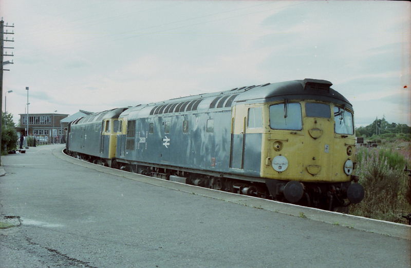 The late Tony Ewer catches the old Forres layout (its very different today) as 26028 and 47271 leave Forres with the 1448 Inverness – Aberdeen on August 30th 1983