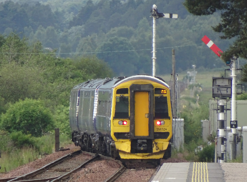 Semaphores survive here at Kingussie (and Newtonmore and Dalwhinnie) and the road is set as 158724 and 170405 with the 1046 Inverness – Edinburgh on July 3rd 2021