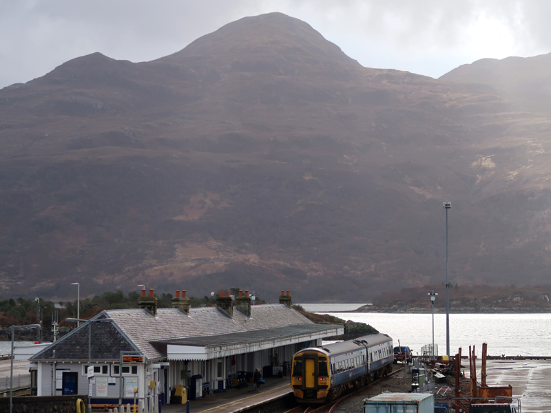 Late running allowed a leap at Strathcarron for the first time in years with 158725 on the 1208 ex Kyle awaiting the late running 1055 ex Inverness here on March 19th 2024