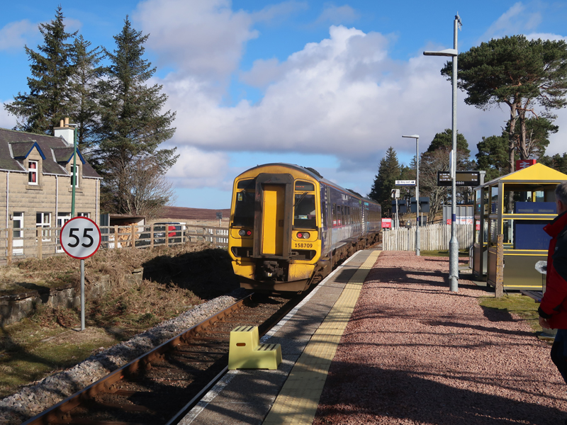 The last Far North shack falls! 158709 leaves lonely Kinbrace with the 0700 Inverness – Wick on March 20th 2024